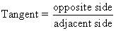 The tangent of an angle is the ratio of the opposite side and adjacent side of the corresponding right triangle.