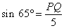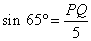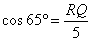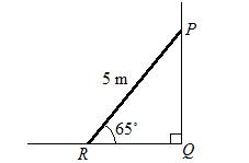 A ladder 5 m long, leaning against a vertical wall makes an angle of 65˚ with the ground.