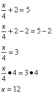 being subtracted. To isolate the variable, we need to add 2 to both sides and then divide both