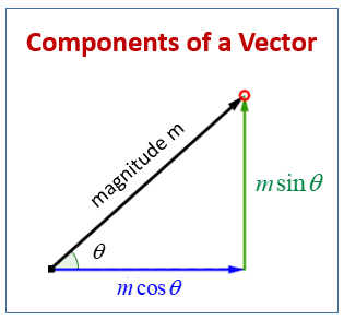 The following diagram shows how to obtain the components of a vector. Scroll down the page for more examples and solutions on how to find and use the components of a vector.